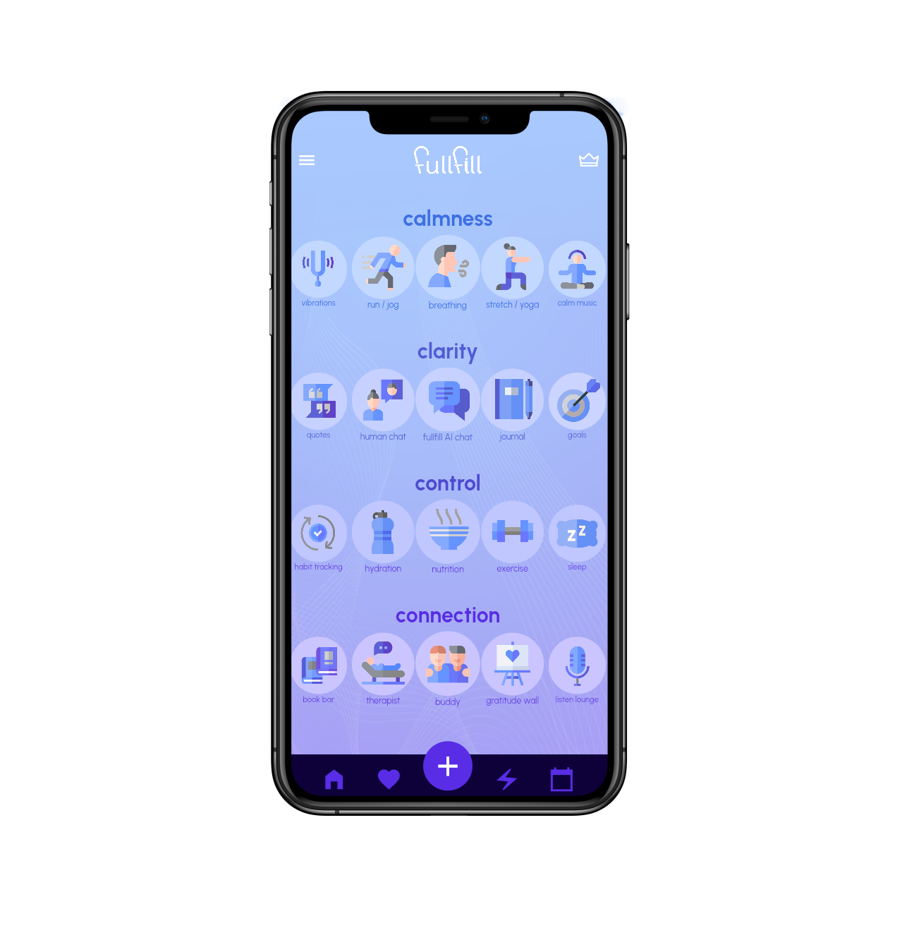 fullfill engages all parts of your brain through our 4C cortex model - calmness, clarity, control, connection. fullfill blends meditation, journaling, habit tracking, purpose, exercise, nutrition and accountability into one journey of growth.